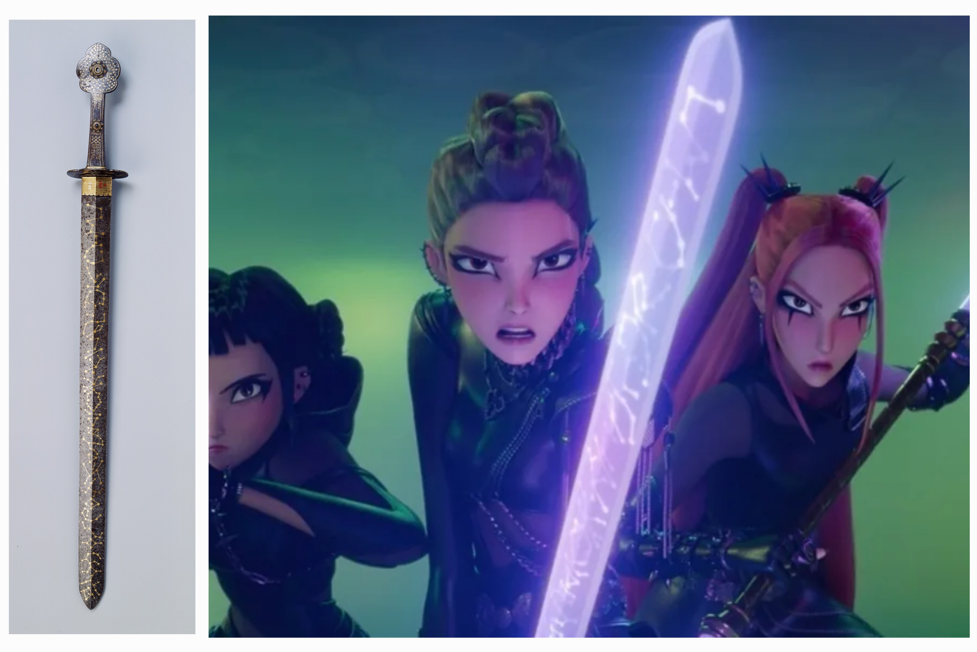 아이돌 그룹 ‘헌트릭스’의 멤버 루미가 악령과 맞설 때 꺼내 드는 긴 칼은 우리나라 국가유산 ‘사인검’을 본뜬 상징적인 무기이다.