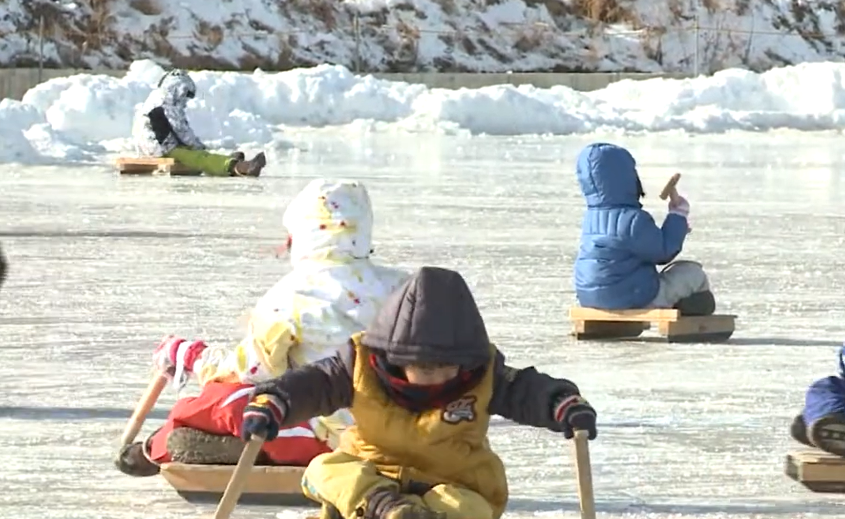 과거에는 논이나 마당에 물을 대어 얼린 뒤 아이들이 탈 수 있는 공간을 만들어 주기도 했다.