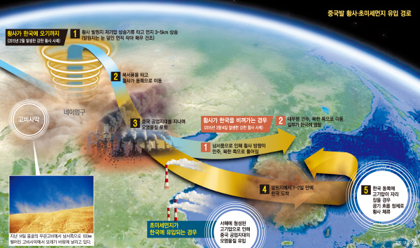 하나는 사막에서 날아오는 황사이고,